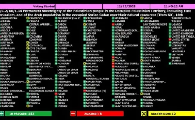 وذكرت “وفا” أن لجنة الأمم المتحدة المعنية بالمسائل الاقتصادية والمالية (اللجنة الثانية)، اعتمدت مشروع القرار المعنون “السيادة الدائمة للشعب الفلسطيني في الأرض الفلسطينية المحتلة بما فيها القدس الشرقية، وللسكان العرب في الجولان السوري المحتل على مواردهم الطبيعية".
