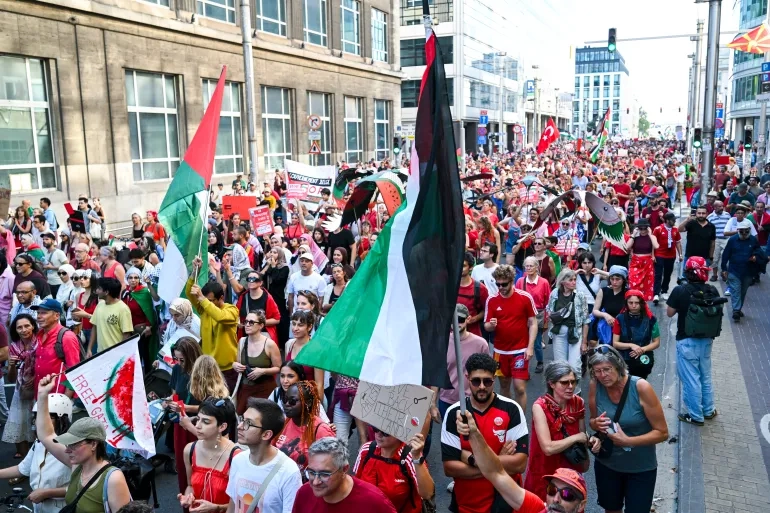تضامن عشرات آلاف الأشخاص بالعاصمة البلجيكية -اليوم الأحد- مع الفلسطينيين في تظاهرات قدّرت الشرطة عدد المشاركين فيها بنحو 70 ألفا، في حين أشار المنظمون إلى مشاركة 120 ألفا.