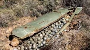 الذخائر العنقودية هي قنابل معبأة في حاويات تُطلق العديد من الذخائر الصغيرة، أو "القنابل الصغيرة"، على مساحة واسعة تعادل مساحة عدة ملاعب كرة قدم. يُحظر استخدام الذخائر العنقودية على نطاق واسع، حيث إن ما يصل إلى 40% من الذخائر الصغيرة لا تنفجر عند الاصطدام، ما يُشكل خطرًا على المدنيين الذين قد يعثرون عليها لاحقًا ويموتون عند انفجارها.