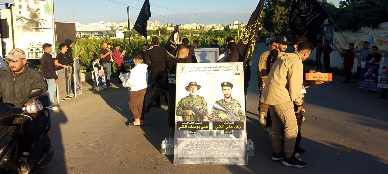 في رحاب الذكرى السنوية الاولى لاستشهاد كوادر وقادة ومجاهدي "حركة الجهاد الإسلامي" في صور، الذين ارتقو على طريق القدس في معركة طوفان الاقصى، اقامت حركة الجهاد الإسلامي بهذه المناسبة حواجز محبة تخليدا لذكرى الشهداء المجاهدين العطرة، تخللها أناشيد جهادية، ورفع رايات سرايا القدس، وصور الشهداء الأبطال.