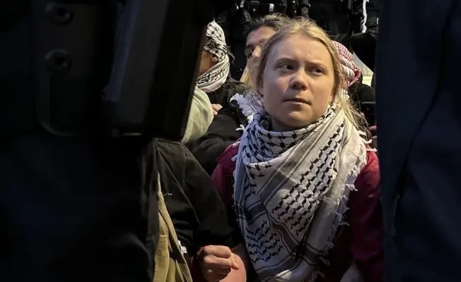 وأفادت الحركة عبر حسابها على منصة شركة "إكس" الأمريكية، أن "غريتا تونبرغ تم توقيفها بموجب قانون الإرهاب بسبب حملها لافتة كُتب عليها: "أدعم سجناء فلسطين أكشن، أنا ضد الإبادة الجماعية".