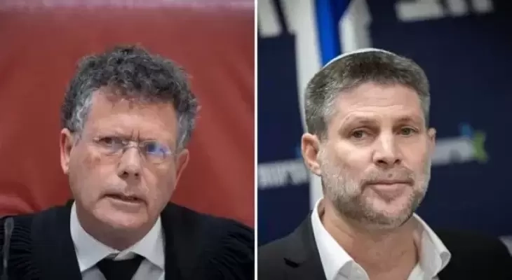 وكان سموتريتش قد هاجم، أمس، رئيس المحكمة العليا بلهجة غير مسبوقة، واصفًا إياه بـ"المهووس العنيف"، ومهددًا بـ"سحقه"، في تصريح أثار موجة انتقادات واسعة.