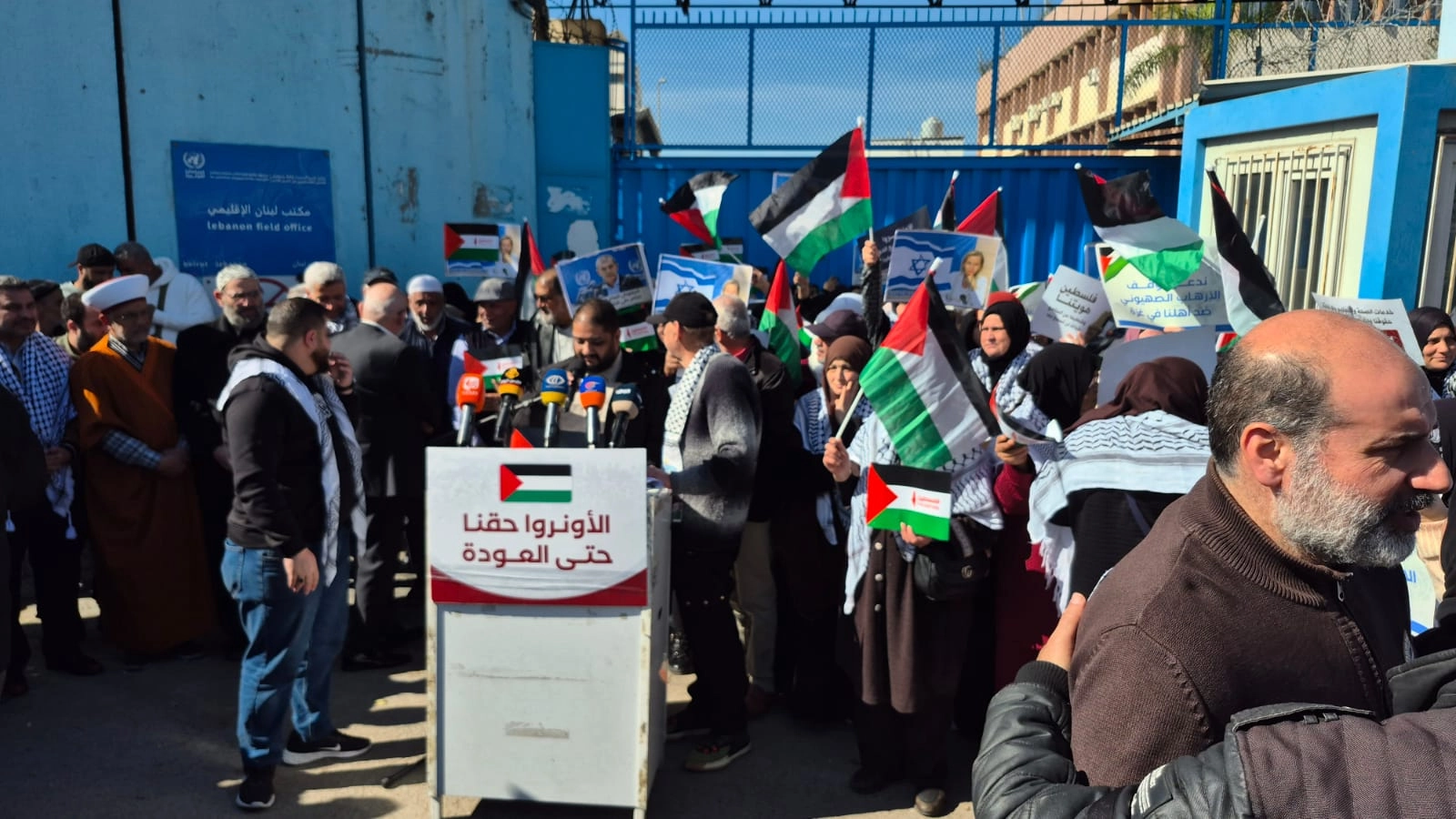 شاركت اللجان الأهلية ولجنة الدفاع عن حقوق اللاجئين والحراكات الشبابية في المخيمات الفلسطينية يوم الخميس الموافق 5/2/2026 في الإعتصام المركزي أمام مكتب الاونروا الرئيسي في بيروت، وذلك تعبيرا عن الرفض المطلق لسياسات الأونروا التعسفية بحق الموظفين والمعلمين والإستقطاع من مرتباتهم والتهديد بفصل من يعارض هذه القرارات من الموظفين، فضلا عن السياسات التقليصية التي ستطال خدمات التعليم والصحة والإغاثة وغيرها والتي تهدف جميعها إلى تفريغ الأونروا من مضمونها ومن الهدف الذي أنشئت من أجله وترك اللاجئين الفلسطينيين يعانون الفقر والمرض والجهل والأمية دون رعاية أو معيل.