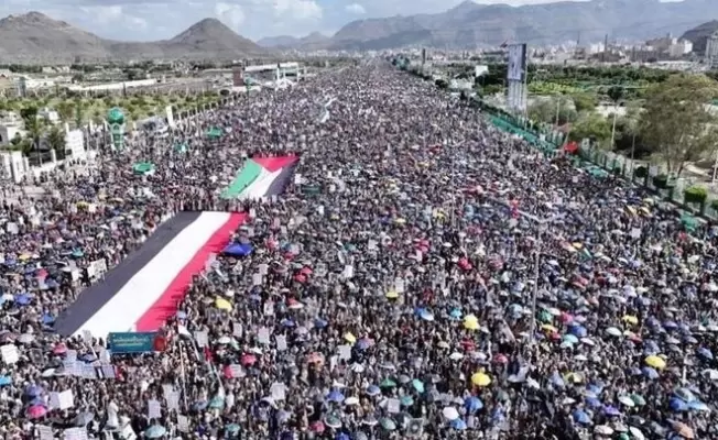 وقالت "أنصار الله"، في بيان صدر في ختام المظاهرة، إن "هذا الخروج المليوني تأكيد على موقف اليمن الثابت المساند للشعب الفلسطيني والمسجد الأقصى وقضايا الأمة، ومواجهة المشروع الأمريكي الإسرائيلي المسمى (إسرائيل الكبرى) الذي يستهدف أمتنا ومنطقتنا دون استثناء".