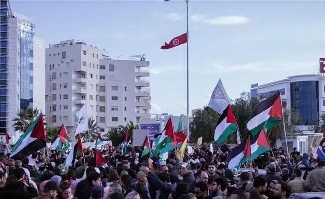 نظم مئات التونسيين وسط العاصمة تونس، مسيرة تضامنية بمناسبة إحياء يوم الأرض الفلسطيني ونصرة القضية الفلسطينية، وللمطالبة بالإفراج عن ناشطين تونسيين بأسطول الصمود.