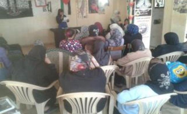 وألقت كلمة الجبهة أم سامر عيد تحدثت فيها عن المرأة الفلسطينية التي "تناضل من أجل استعادة الحقوق والمقدسات الإسلامية، والتي تؤكد أنها ملتزمة بقضايا شعبها وامتها". ودعت إلى "التمسك بحق العودة ورفض التوطين واستمرار خيار المقاومة".
